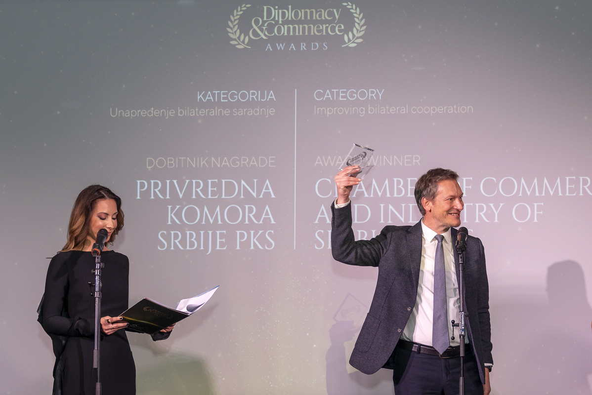 THE CHAMBER OF COMMERCE AND INDUSTRY OF SERBIA’S is this year’s award recipient in the category of advancing bilateral cooperation. During the pandemic, the Chamber provided support to businesses, activated a specialized information service which provided companies with information on all key issues related to doing business in the country and abroad. One of the most important projects is the launch of the Digital Transformation Centre, which coordinates and implements digital transformation in all private sector industries, with a special focus on SMEs.