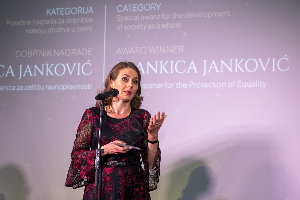 A special award for the contribution to the development of society as a whole went to BRANKICA JANKOVIĆ, the Republic of Serbia’s Commissioner for the Protection of Equality. According to the 2021 report compiled by the Commissioner for the Protection of Equality, most of the complaints that the Commissioner received that year from citizens related to discrimination based on health, gender and age, and they mainly related to discrimination related to employment and workplace and public authorities. The year 2021 was also marred by the ongoing health crisis, with the strongest focus being on the immunization of the population, which was well organized with equal availability of vaccines for all citizens.