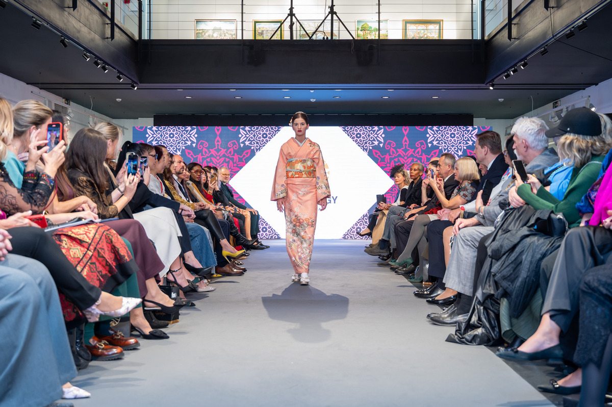 Japan was the country in focus, and the kimono emerged as a natural guide through the theme: straight lines and layered fabrics follow the rhythm of the seasons, while motifs of cherry blossoms, chrysanthemums, pine, bamboo, plum, cranes, and waves carry messages of beauty, longevity, happiness, and endurance.