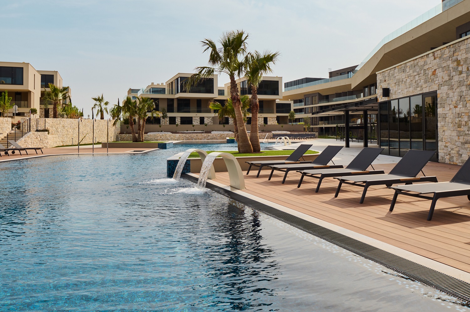The complex covers almost 85,000 m2 and contains 55 villas and 197 apartments of modern design, built according to the highest standards of green construction. In addition to accommodation facilities available for rent or purchase, within the resort guests have access to three restaurants, two swimming pools, a beach, wellness and sports facilities, as well as property management with 24-hour support. Petram’s trademark is the longest infinity rooftop pool in Europe, 105 meters long.